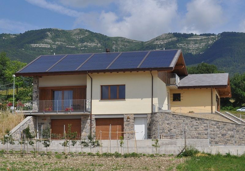 Высокотехнологичная фотогальваническая гибкая черепица ТЕГОСОЛАР, интегрированная в кровельное покрытие. Способна моментально трансформировать солнечную энергию в электроэнергию, используя так называемый «фотоэлектрический эффект».