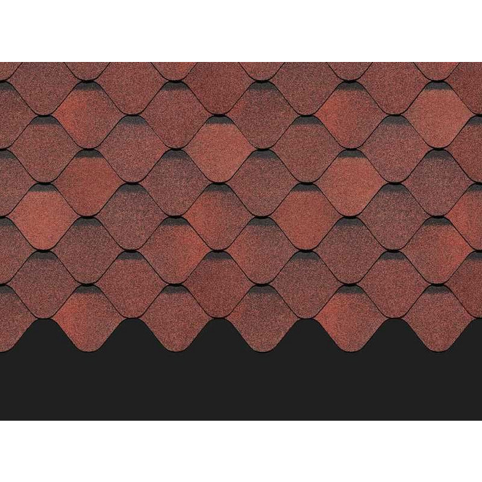 Вкусный насыщенный цвет, оригинальная овальная форма лепестков гонтов, объемный эффект создают оригинальный яркий дизайн. Черепица не останется незамеченной. Кровля станет оригинальным дополнением к фасадам под камень и светлую кирпичную кладку.