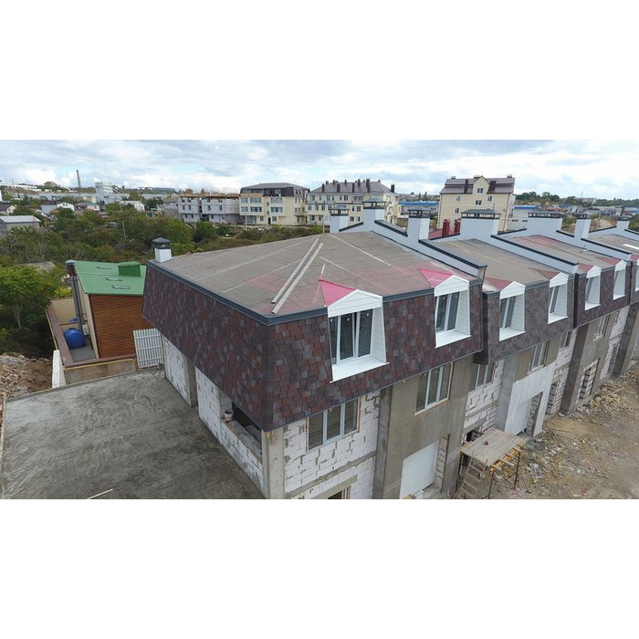 SBS-модифицированный битум в основании придаёт черепице особо высокую пластичность. Поэтому она не трескается на морозе и не коробится в жаркую погоду. Кроме того, её удобно сгибать при монтаже криволинейных участков кровли