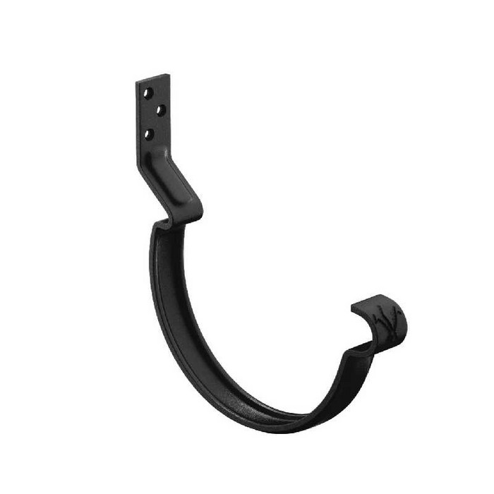 Конструкция крюка имеет более вытянутое и глубокое ребро жесткости, поэтому крюк выдерживает повышенные силовые нагрузки. Передний замок крюка фиксирует завиток желоба снаружи, и благодаря этому желоб удобно монтировать даже после установки фартука-капельника. Задний замок имеет конструкцию, исключающую смещение желоба под нагрузкой. Отверстия под крепеж выполнены с зенковкой под шляпку в потай. На передней части крюка расположен фирменный штамп - лилия.Поставляется с комплектом креплений.