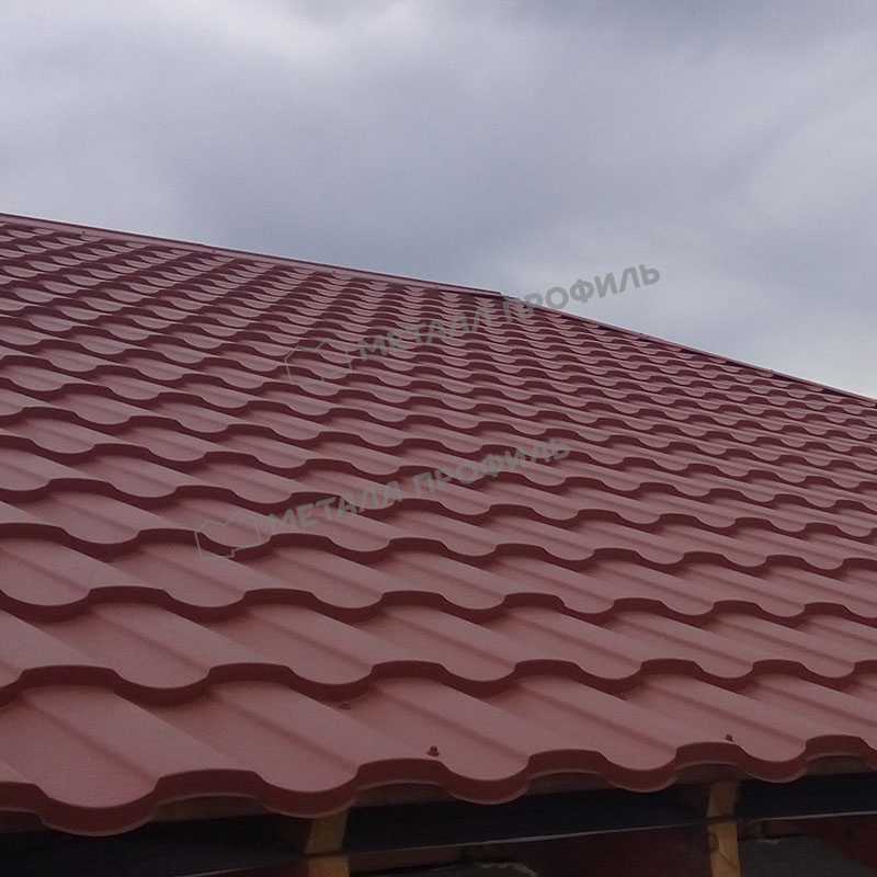 • Кровля защищена от физических повреждений, поскольку в основе металлочерепицы сталь толщиной 0.5 мм (с учётом металла, оцинковки и полимерного слоя).