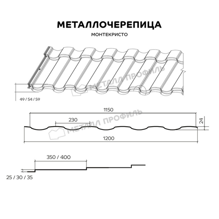 МОНТЕКРИСТО ― новый выразительный профиль металлочерепицы. Его глубина ― 49, 54 либо 59 мм. Рассматриваемый кровельный материал будет долго украшать ваш дом. Стальная черепица МОНТЕКРИСТО эстетично выглядит на крыше малой площади: даже небольшие скатыприобретут благородную выразительность. Плавные волны профиля притягивают внимание прохожих. В процессе производства указанного кровельного материала используется особая технология фигурного реза. Металл прокатывается на высокотехнологичном оборудовании, поэтому листы отлично стыкуются. Изысканный и элегантный ― это профиль МОНТЕКРИСТО.