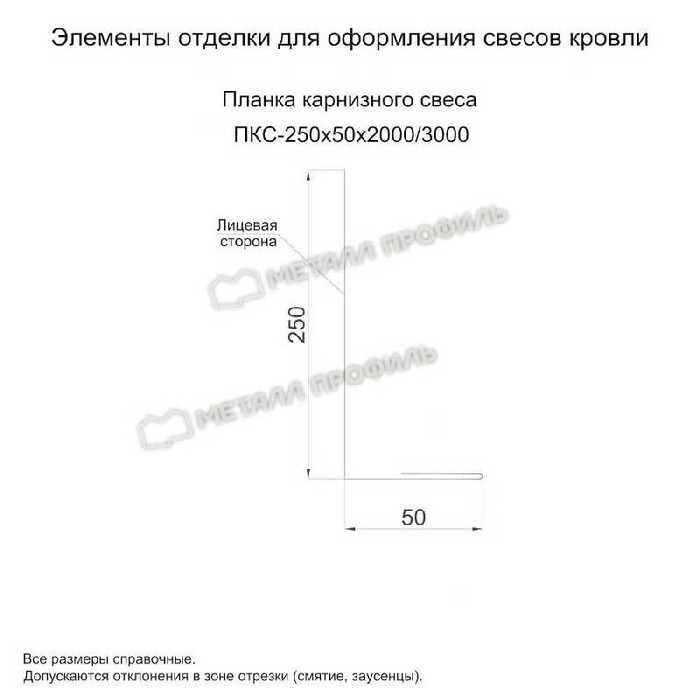 Планка карнизного свеса 250х50х2000 (ПЭ-01-1015-0.45)
