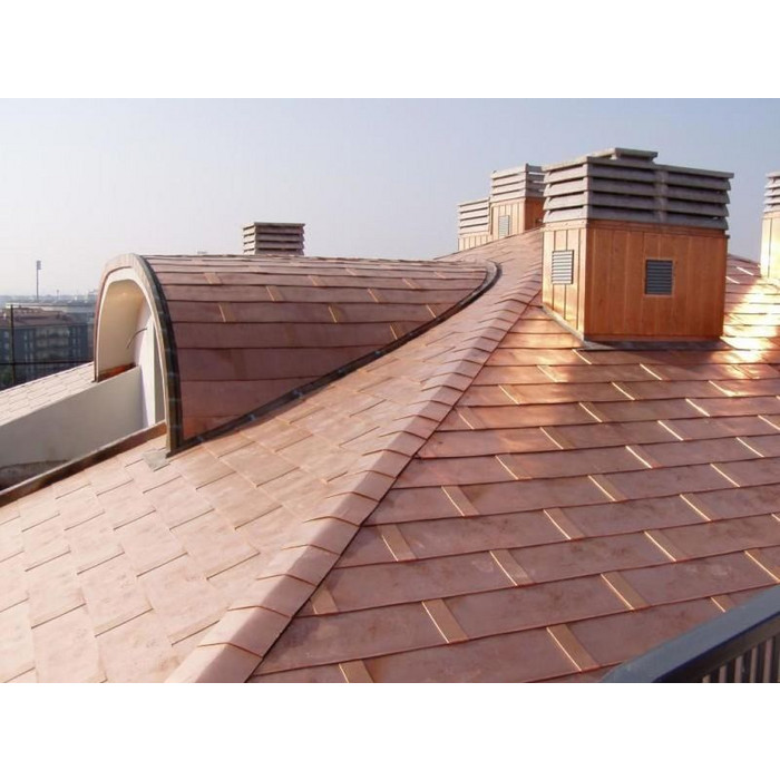 Модель черепицы ПРЕСТИЖ АЛЮ выполнена с применением прочного и легкого алюминия. Помимо практичности, алюминий, покрашенный с применением современных полимеров, предлагает особую эстетику. Модель представлена в 6 благородных оттенках - натуральный серебряный, насыщенный бронзовый, благородный золотой, классический бронзовый, состаренный "медная ярь" и иммитирующий знаменитую сталь "кортен". Большой размер пластин подчеркнут соответсвующей алюминиевой стыковой накладкой. По-разному укладывая пластины черепицы можно менять рисунок кровли.