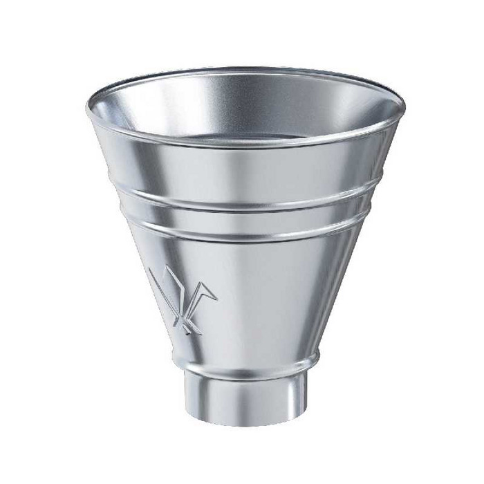 Воронка водосборная круглая предназначена для одиночной установки в местах без использования желобов (разжелобовка), в ендовах, т.е. в тех местах кровли, где необходим сбор большого количества воды.