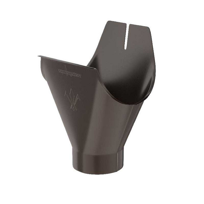 Воронка желоба устанавливается на водосточном желобе и является устройством, передающим поступающую из желоба воду в водосточную трубу. Не требует дополнительных мер по герметизации. Надежность воронки желоба обеспечивается наличием усиленного ребра жесткости в передней части.